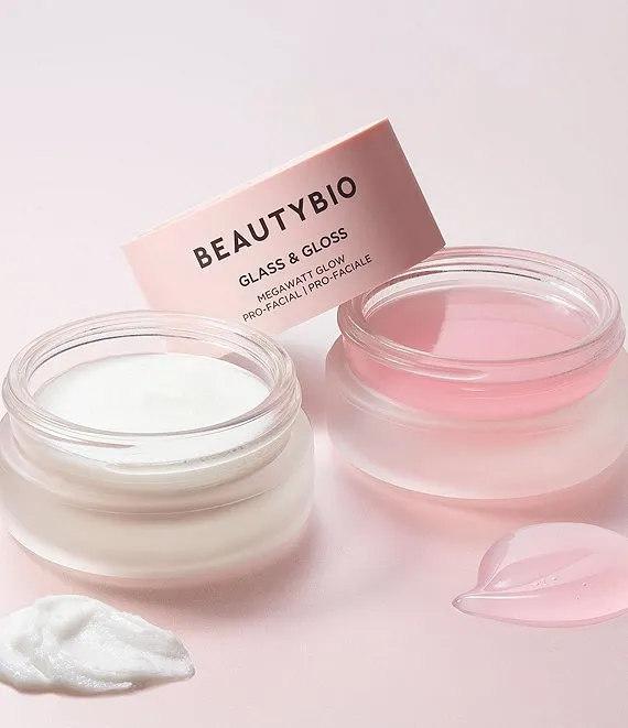 Meet your new 2-step facial from home that instantly delivers velvety soft skin and a lit-from-within glow that lasts for days. Use BeautyBio's Glass and Glow 2-3x a week to reset skin in seconds with the same two key steps included in a professional glow-inducing facial - dermabrasion exfoliation and restorative, hydrating nutrients. Formula is 100% clean, vegan and perfect for all skin types.
