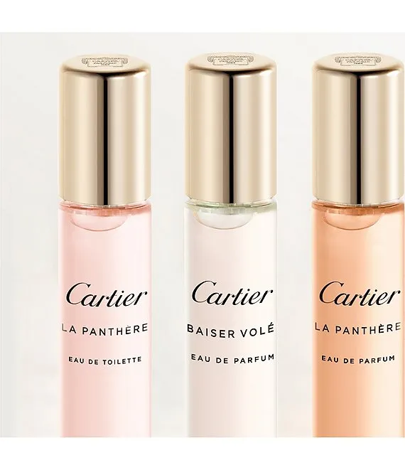 The Maison Cartier is delighted to present three of its finest olfactory creations for women, with an elegant set composed of three travel sprays.