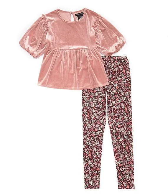 • Big Girls 7-16 3/4 Sleeve Velvet Babydoll Top & Floral Printed Leggings Set