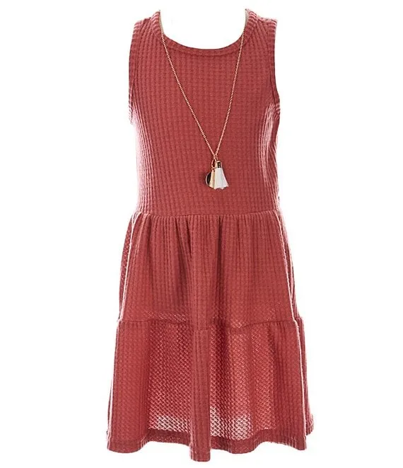 Big Girls 7-16 Long-Sleeve Floral-Printed Dobby Kimono, Waffle Knit Fit-And-Flare Dress & Necklace Set