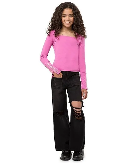 Big Girls 7-16 Long Sleeve Grommet Detail Top