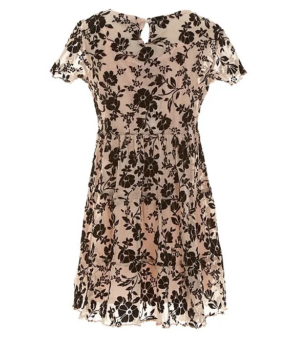 • Big Girls 7-16 Long-Sleeve Metallic Cardigan & Flocked Fit-And-Flare Dress Set