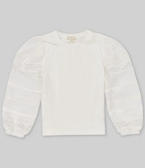 Big Girls 7-16 Long-Sleeve Mixed Fabrication Pullover Top