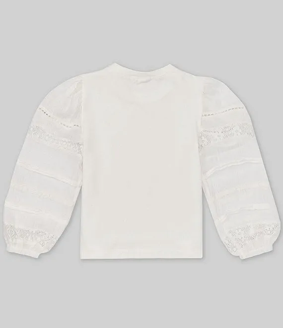 • Big Girls 7-16 Long-Sleeve Mixed Fabrication Pullover Top