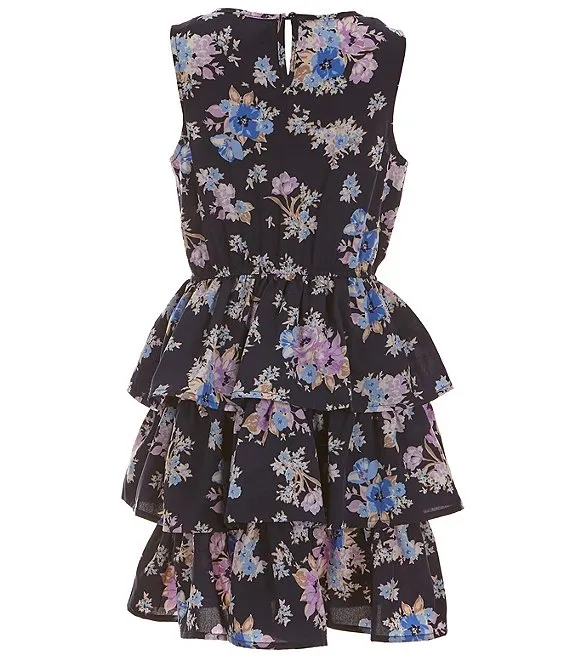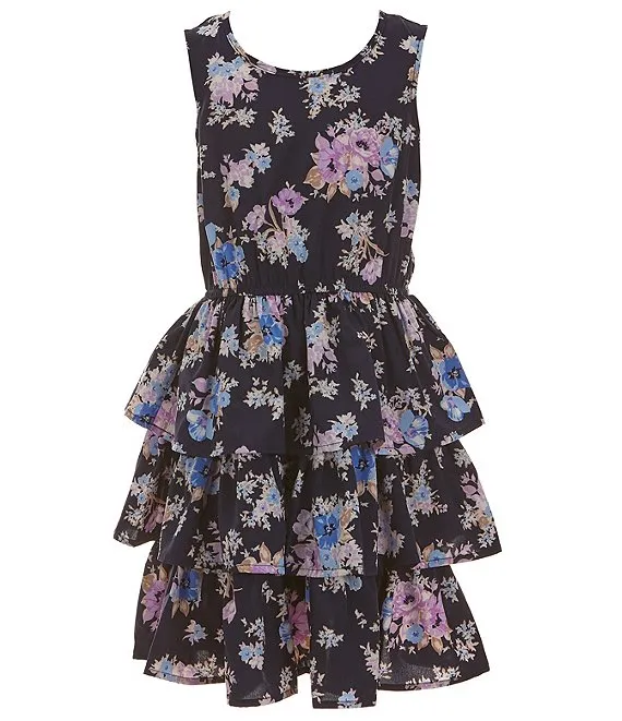 • Big Girls 7-16 Long Sleeve Solid Shrug & Sleeveless Floral-Printed Fit & Flare Dress Set