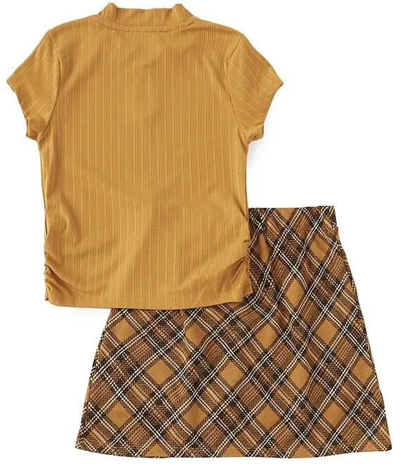 - Plaid skort with pull-on styling