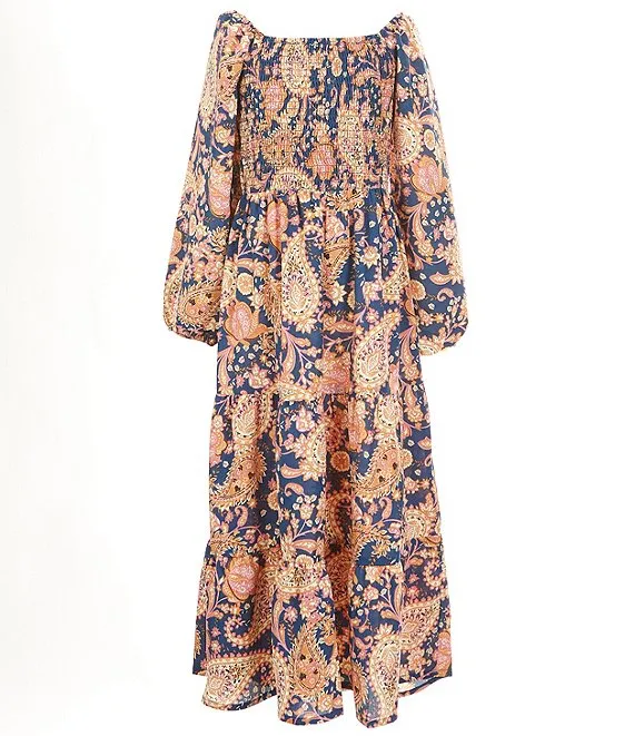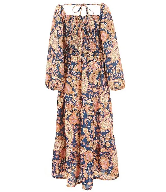 • Big Girls 7-16 Sleeveless Denim Vest & Long Sleeve Printed Fit And Flare Long Dress