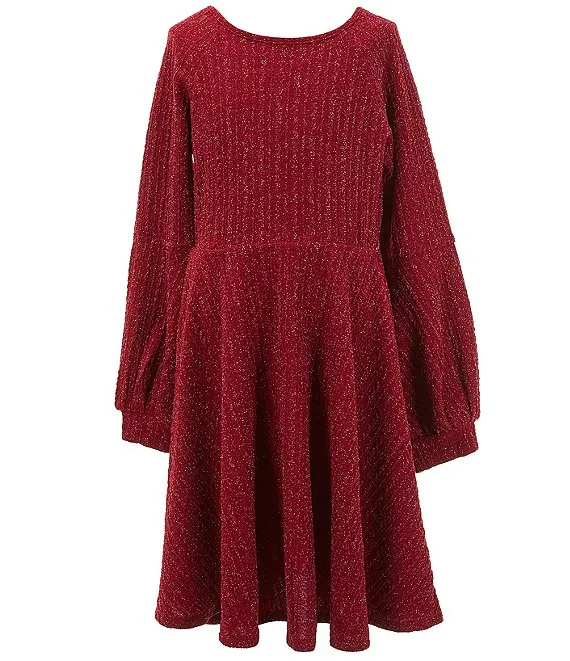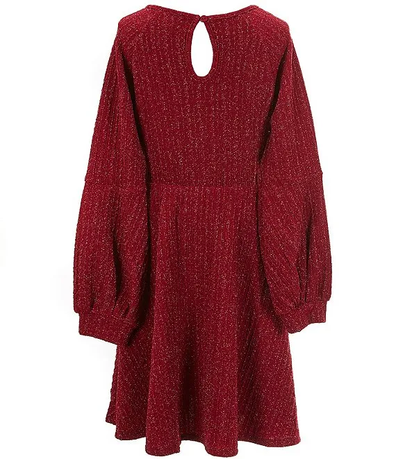 • Big Girls 7-16 Sleeveless Faux-Fur Vest & Long Sleeve Metallic A-Line Dress
