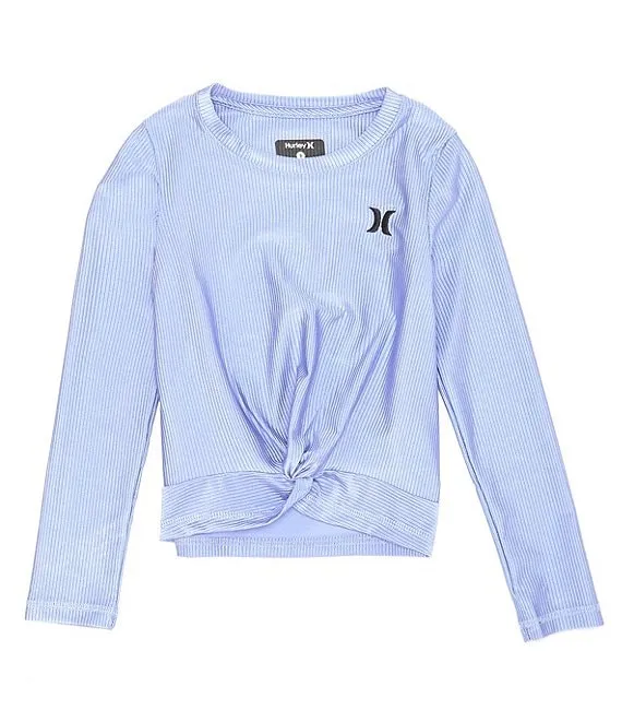 Big Girls Long Sleeve Twist-Front Shiny-Rib-Knit Top
