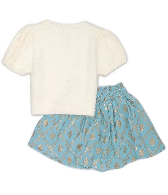 • Little/Big Girls 2T-10 Short-Sleeve Fuzzy-Knit Sweater & Pleated Skirt Set