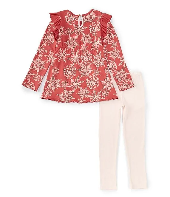 • Little Girls 2T-5T Long Sleeve Printed Vintage Tunic Top & Ruffle-Seat Leggings Set