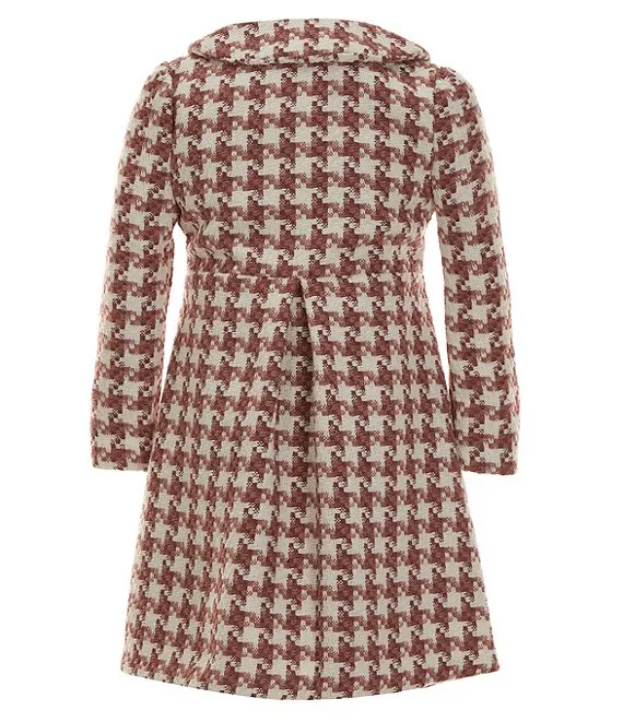 - Houndstooth bouclé coat with Peter Pan collar, long sleeves and partial-button front