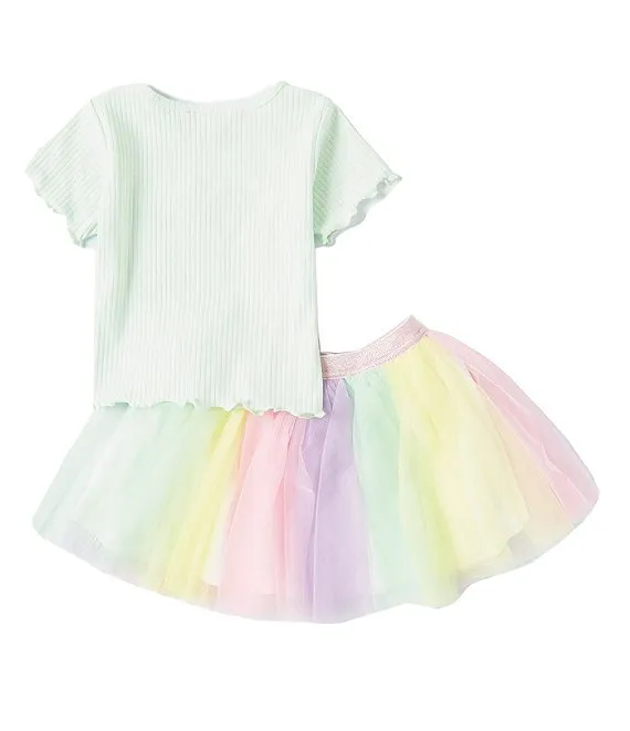 - Rainbow-paneled mesh tutu skirt with and an elastic waist
