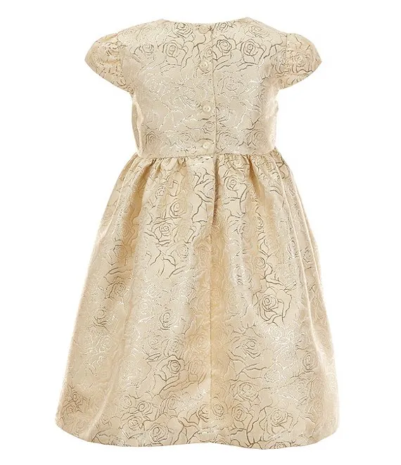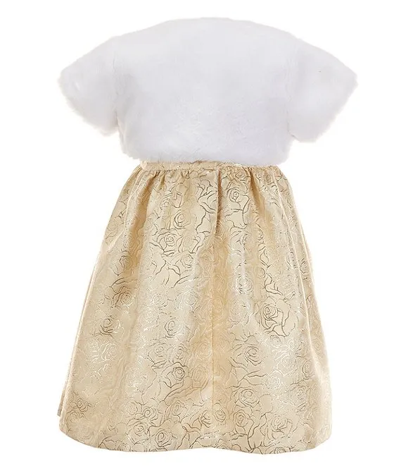 • Bonnie Jean Little Girls 2T-6X Short Sleeve Faux-Fur Shrug & Short-Sleeve Floral/Metallic Jacquard Fit-And-Flare Dress Set