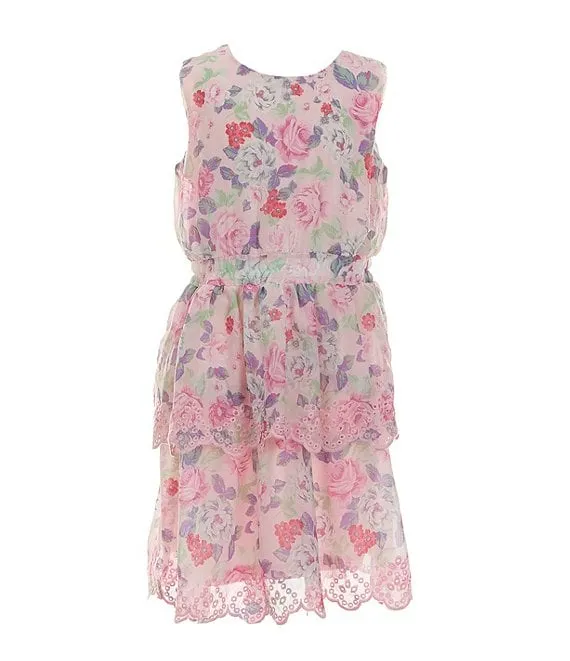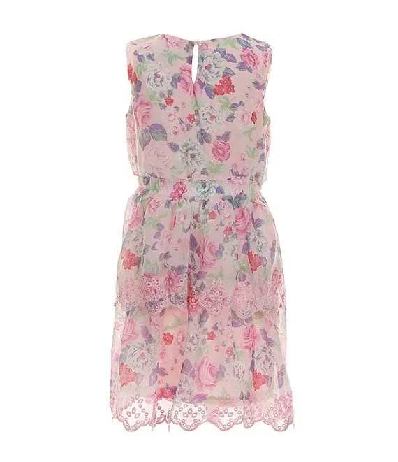 - Floral-border printed dress with round neckline