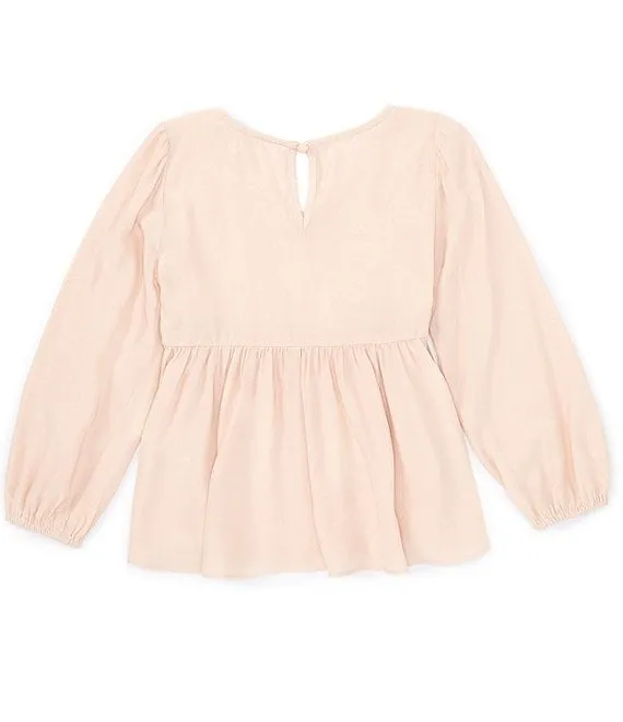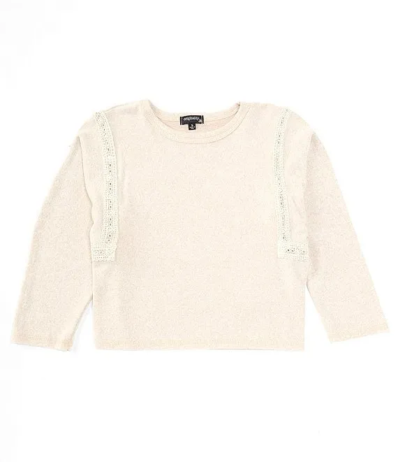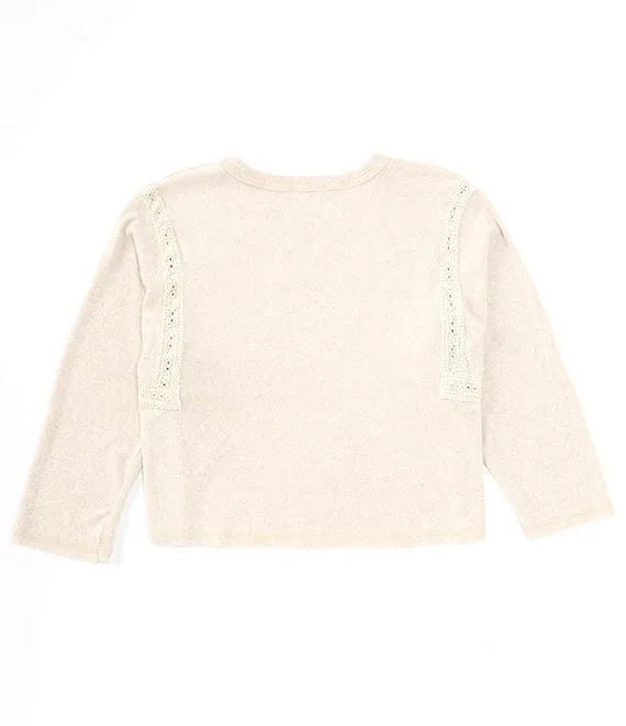 Big Girls 7-16 Long Sleeve Crocheted-Trim Boxy Top