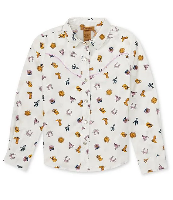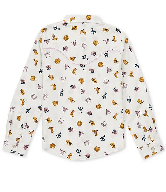 Wrangler® Big Girls 8-20 Long Sleeve Printed Poplin Western Shirt