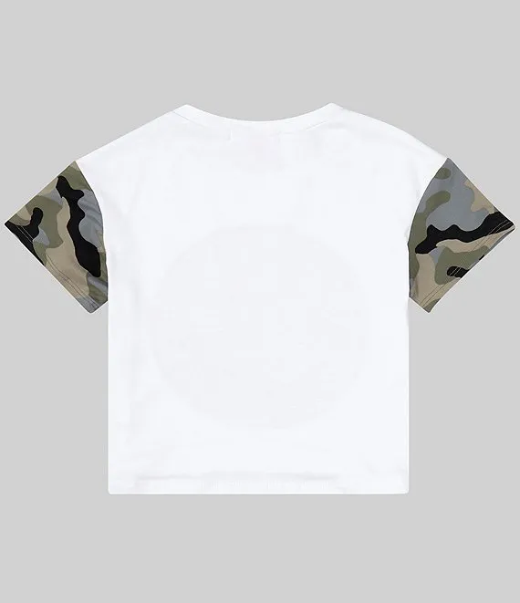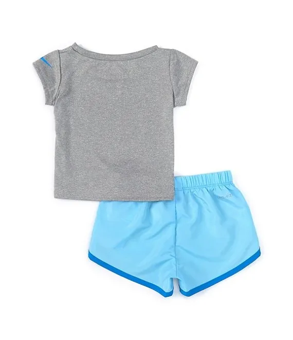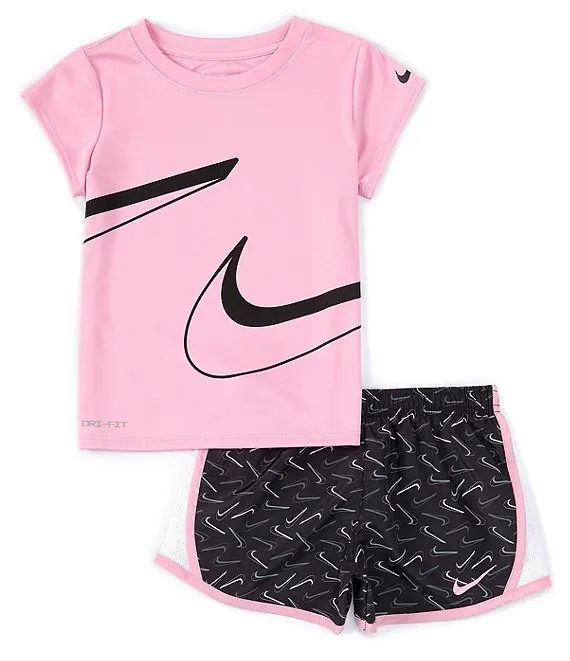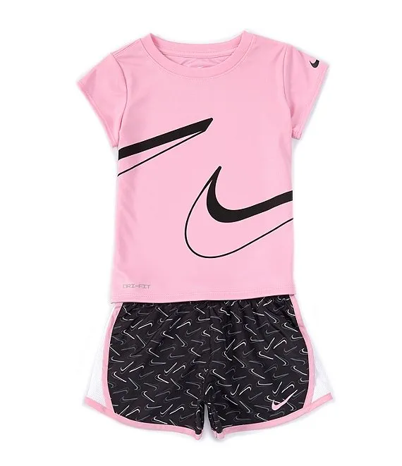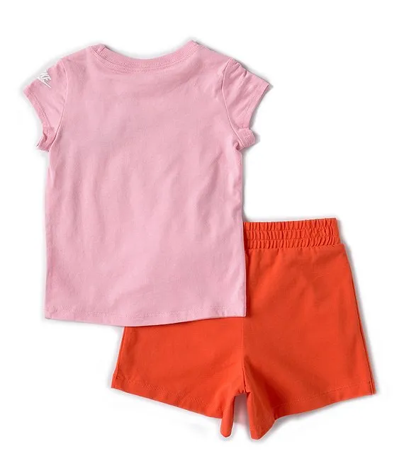 Nike Little Girls 2T-6X Short Sleeve Swooshfetti Interlock T-Shirt & Printed Microfiber Shorts Set
