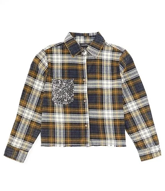 Big Girls 7-16 Long Sleeve Plaid Back Sequin Shirt