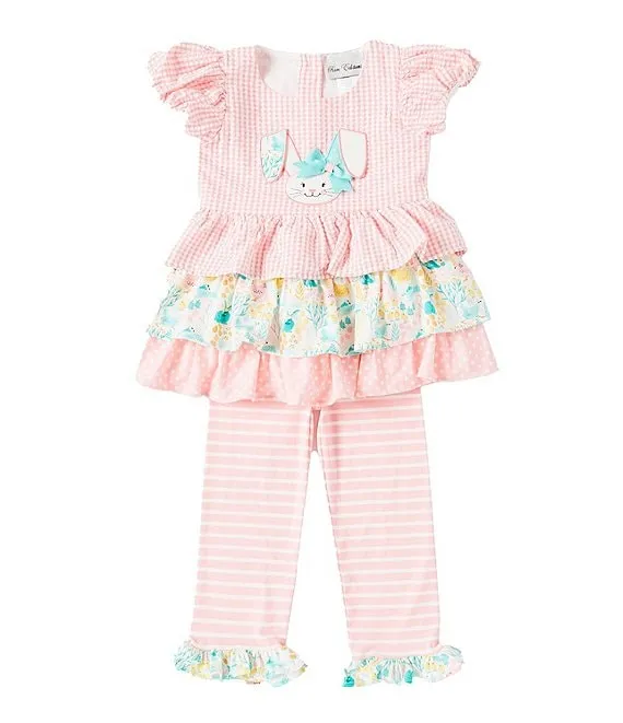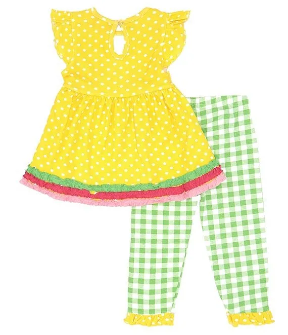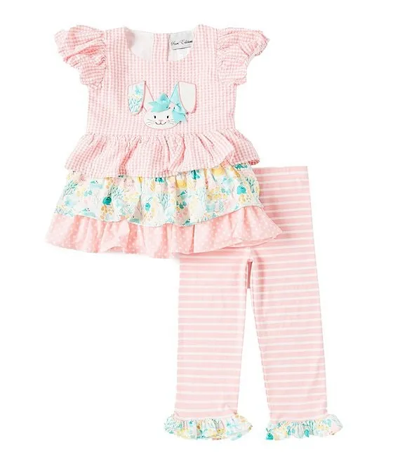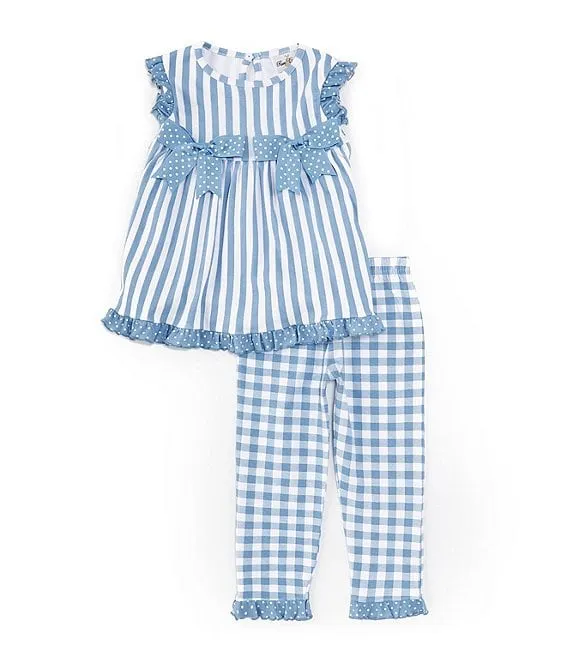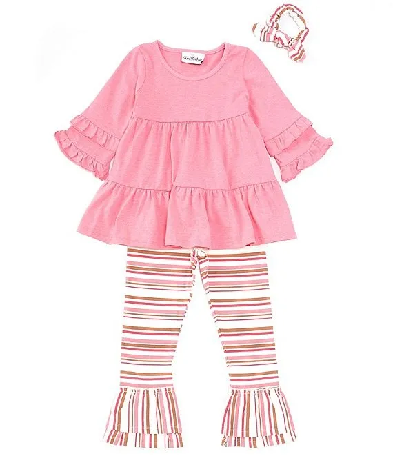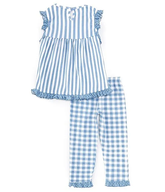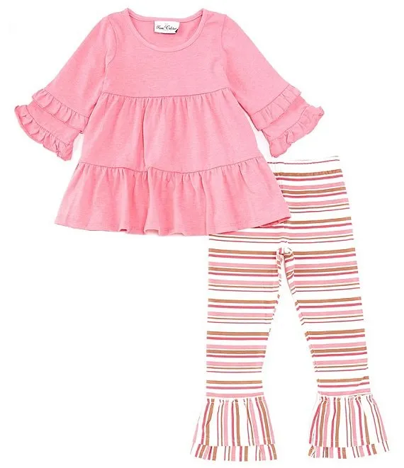 Little Girls 2T-6X Ruffle Sleeve Solid Tunic & Striped Leggings Set