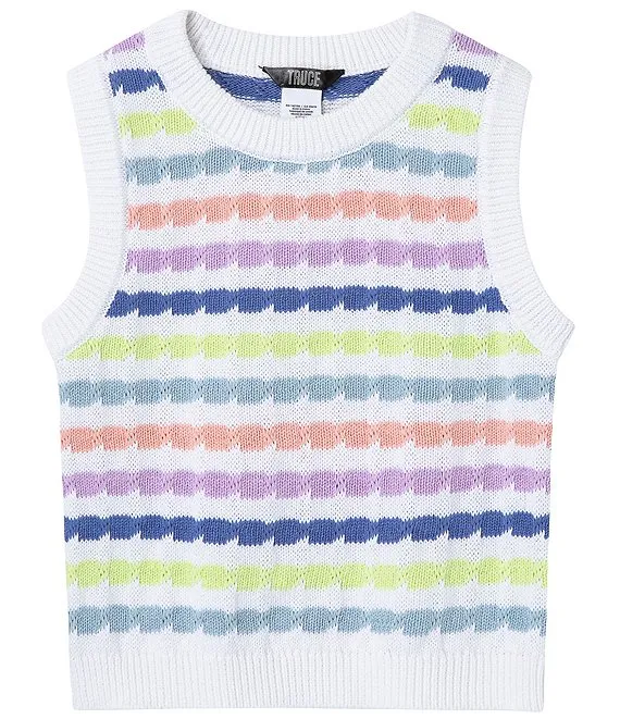 Big Girls 7-16 Sleeveless Multicolor Striped Crochet Top