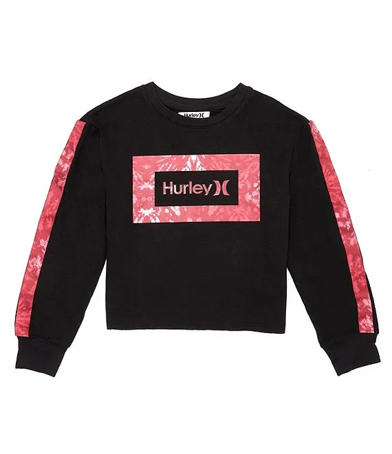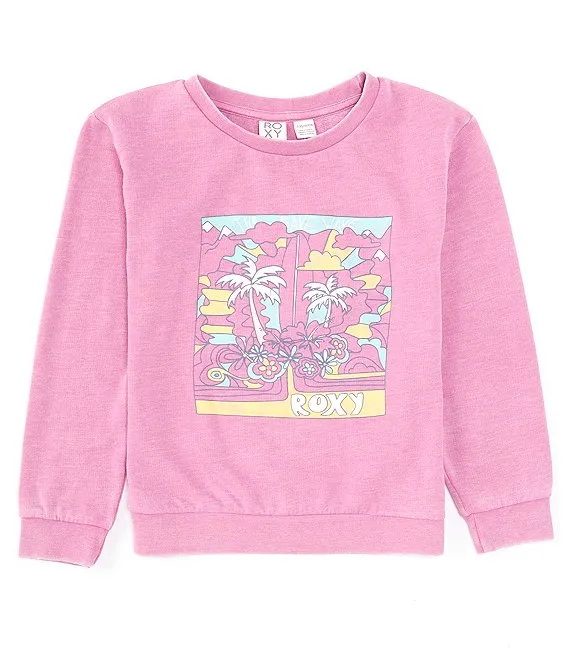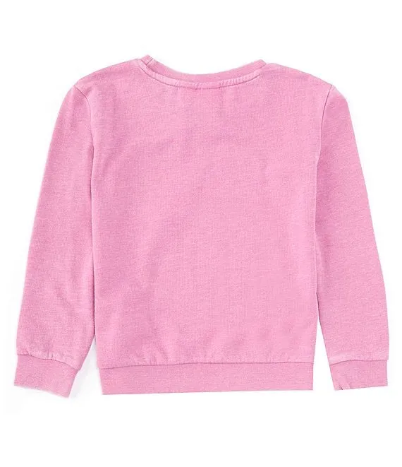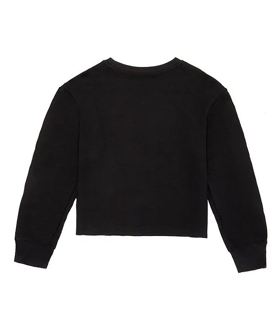 Big Girls 7-16 Long Sleeve Printed Taping Logo Raw Edge Crewneck