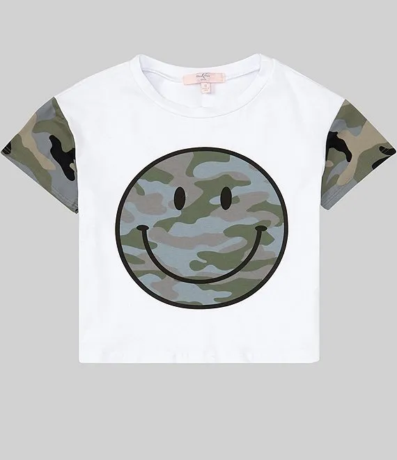 Big Girls 7-16 Short Ruffle Sleeve Smile Graphic T-Shirt