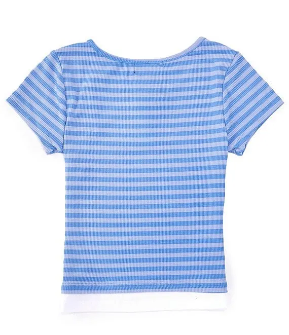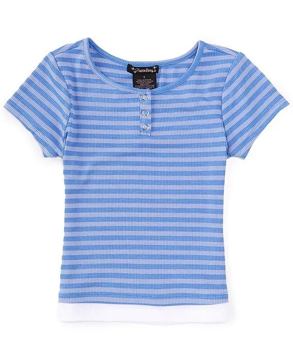 Big Girls 7-16 Short-Sleeve Striped Henley Top