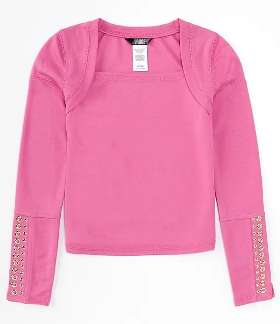 Big Girls 7-16 Long Sleeve Grommet Detail Top