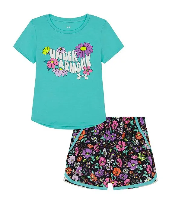 Nike Little Girls 2T-6X Short Sleeve Just Do It Floral Skort 2-Piece Set