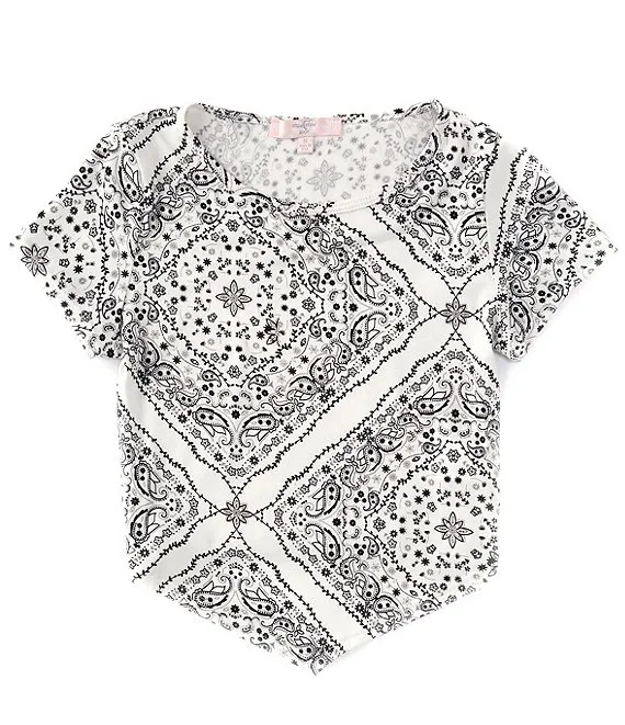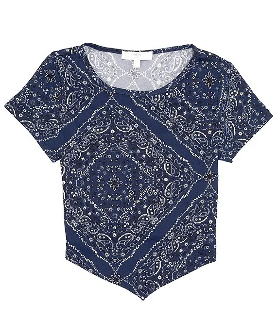Big Girls 7-16 Short Sleeve Patchwork Hanky Hem Top