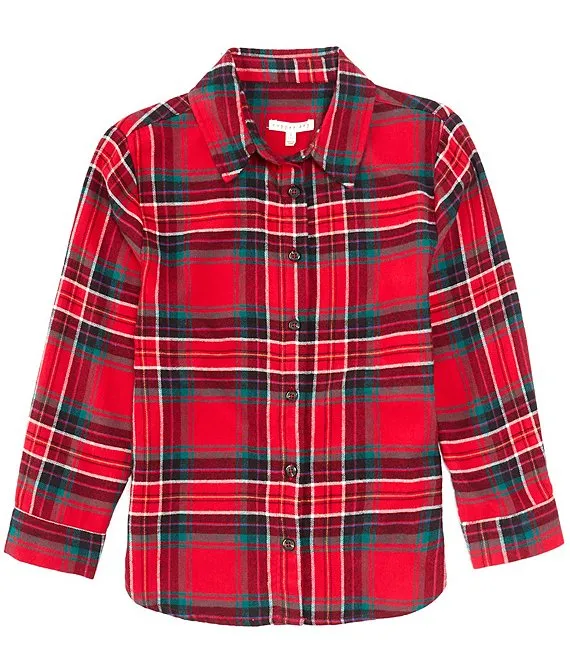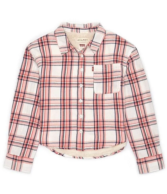 Big Girls 7-16 Long Sleeve Sherpa Lined Plaid Woven Top
