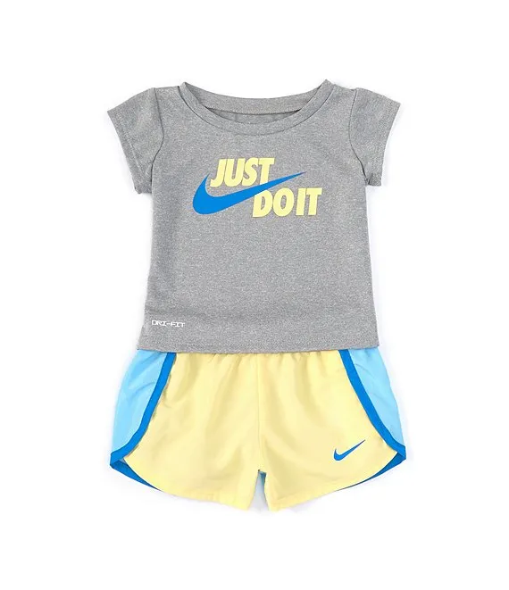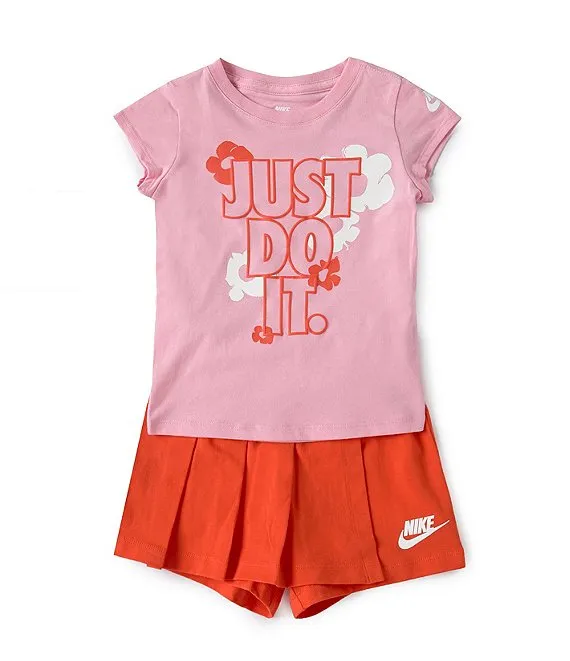 Nike Little Girls 2T-6X Short Sleeve Just Do It T-Shirt & Color Block Shorts Set