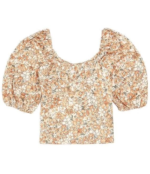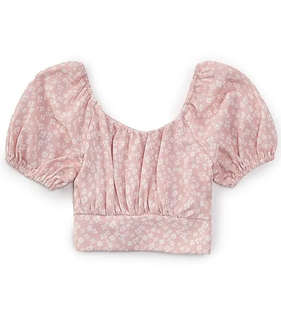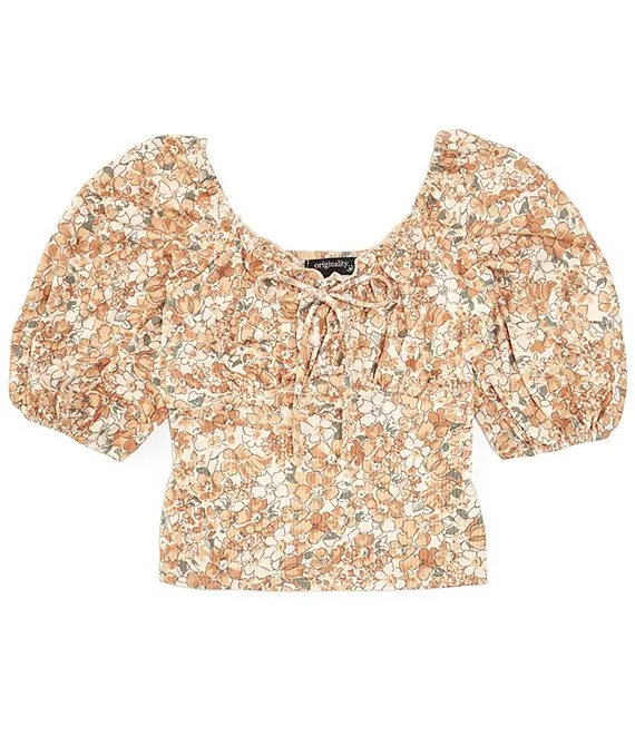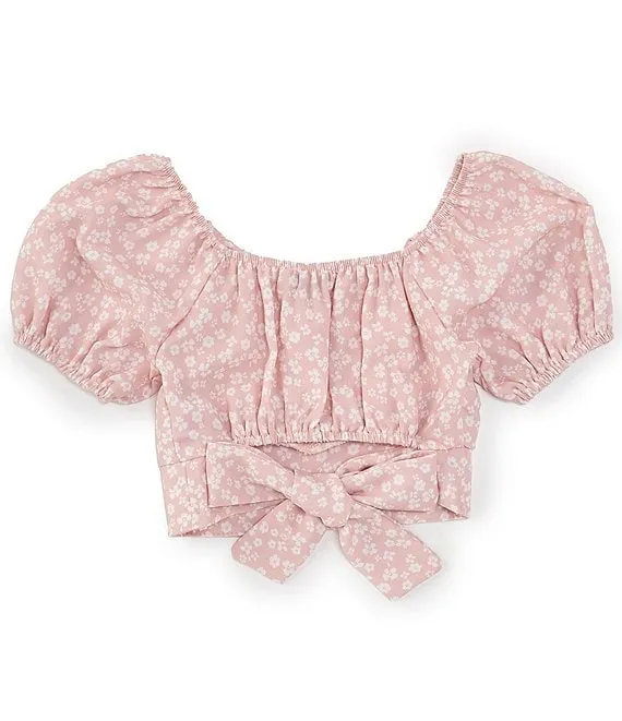 Big Girls 7-16 Ditsy Floral Printed Airflow Tie Back Top