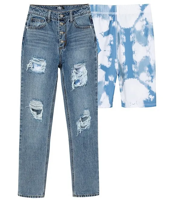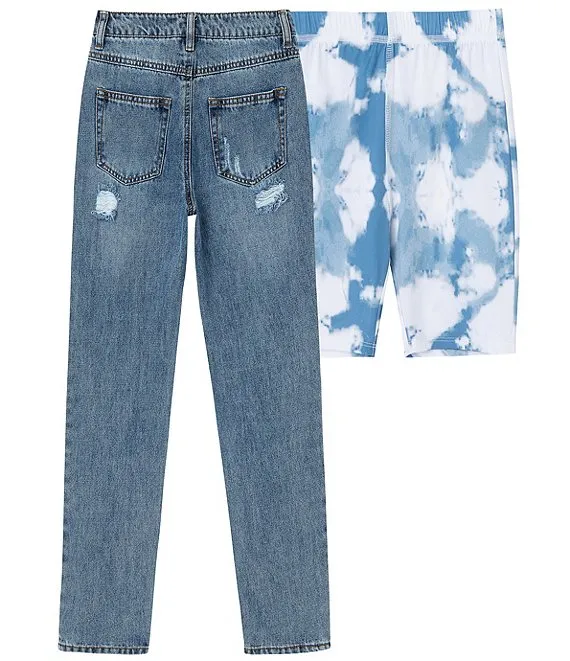 Big Girls 7-16 Boyfriend Jean & Tie-Dye Bike Short 2-Piece Set