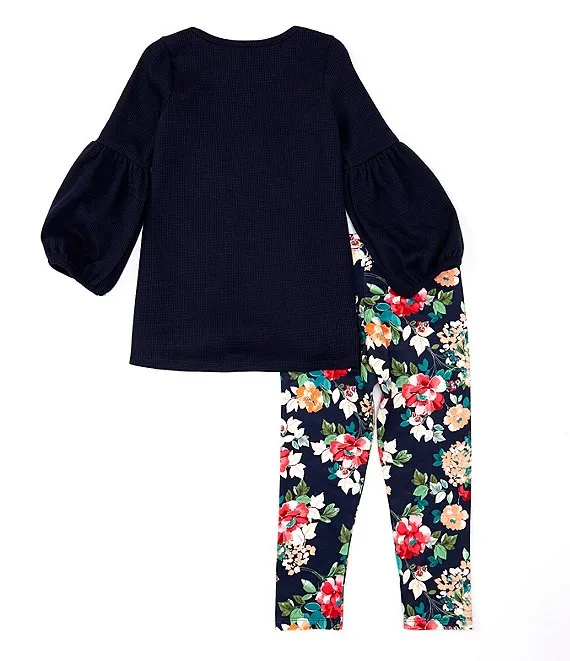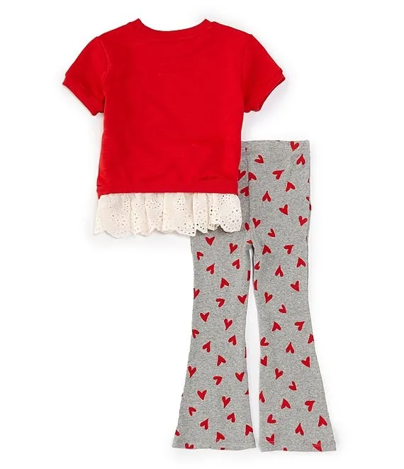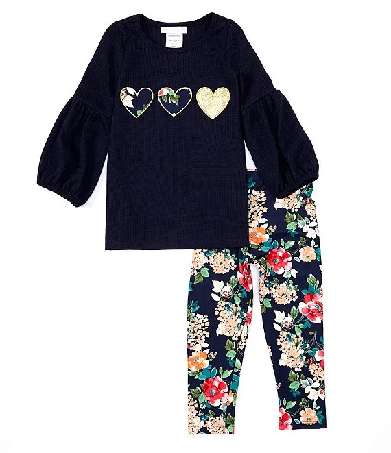 Bonnie Jean Little Girls 2T-6X Long Lantern Sleeve Knit Triple Heart & Floral Print Legging 2-Piece Set