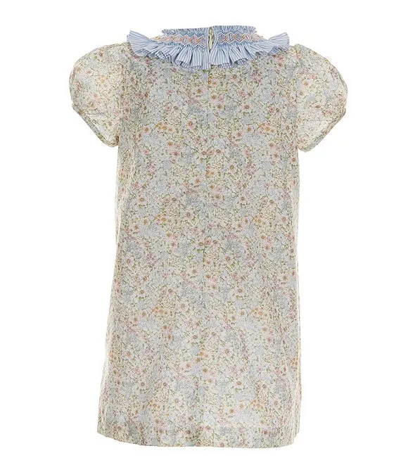 Edgehill Collection Little Girl 2T-6X Round Smocked Neck Cap Sleeve A-line Dress