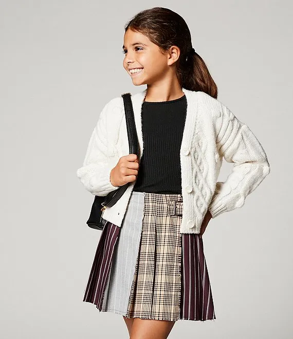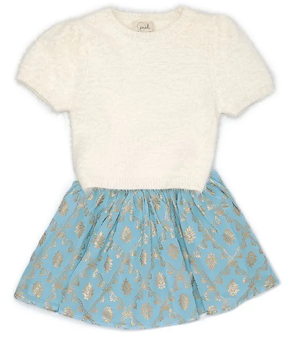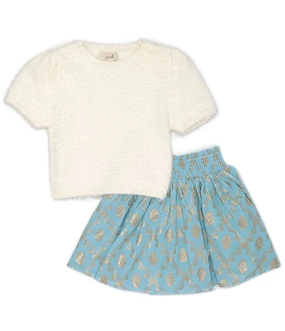 Little/Big Girls 2T-10 Short-Sleeve Fuzzy-Knit Sweater & Pleated Skirt Set