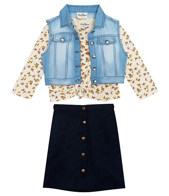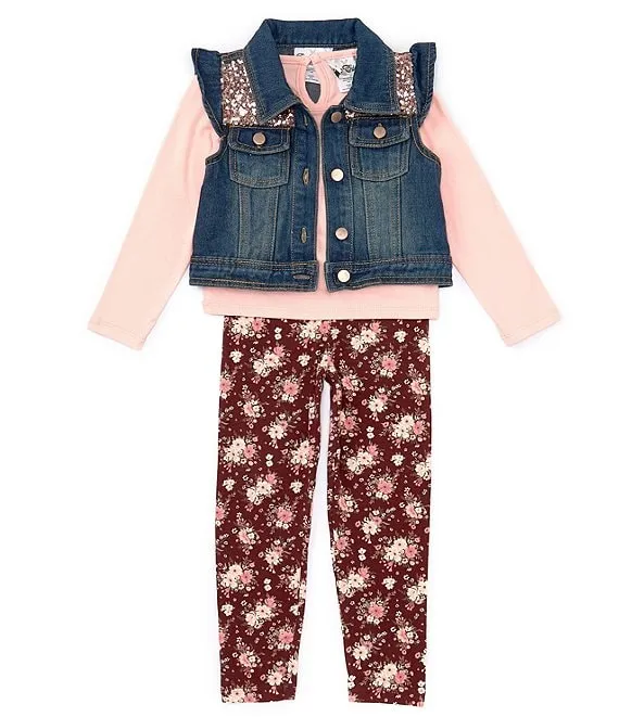 Little Girls 2T-6X 3PC Denim Vest Set