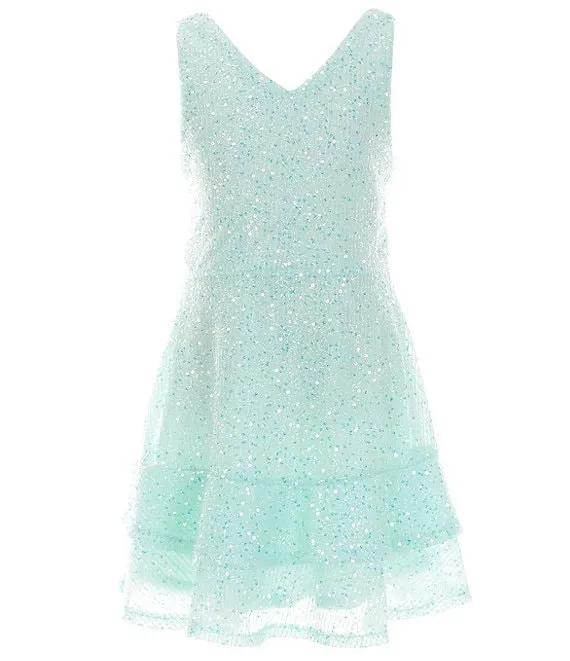 Big Girls 7-16 Sequin Tiered Fit-And-Flare Dress