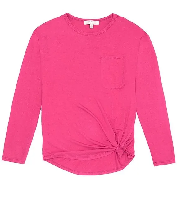 Big Girls 7-16 Long Sleeve Pocket T-Shirt With Knot Front