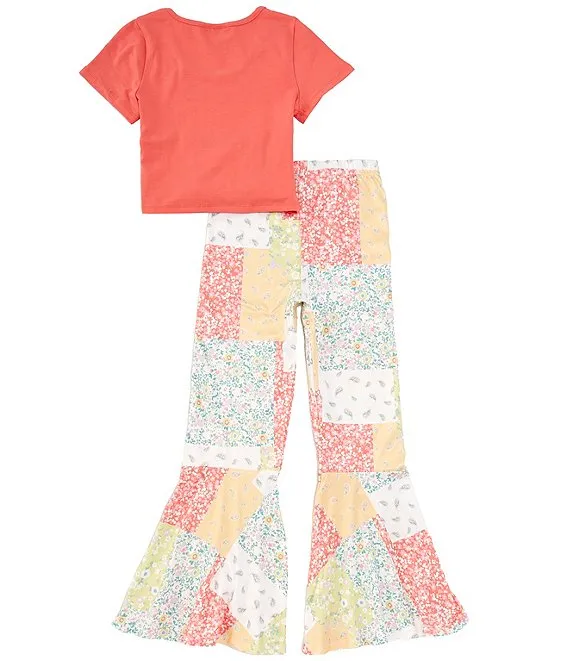 Big Girls 7-16 Solid Short-Sleeve Top & Printed Palazzo Pant Set