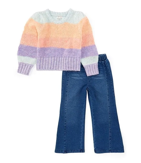 Little Girls 2T-6 Ombre Sweater & Denim Pant Set