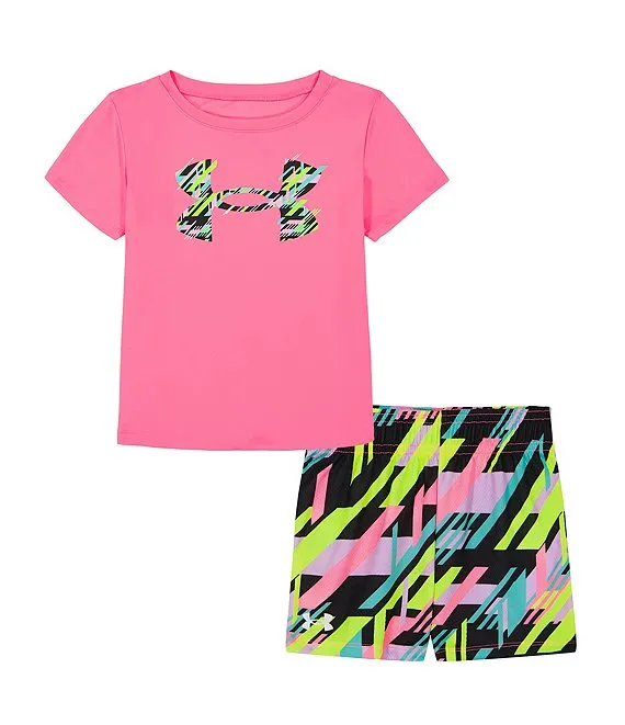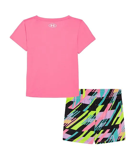 Under Armour Little Girls 2T-6X Short Sleeve Icon Logo T-Shirt & Printed Shorts Set