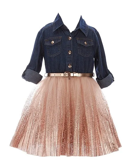 Little Girls 4-6X Denim To Foil Tutu Dress
