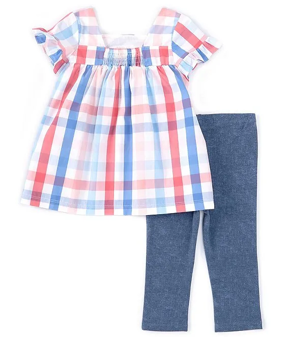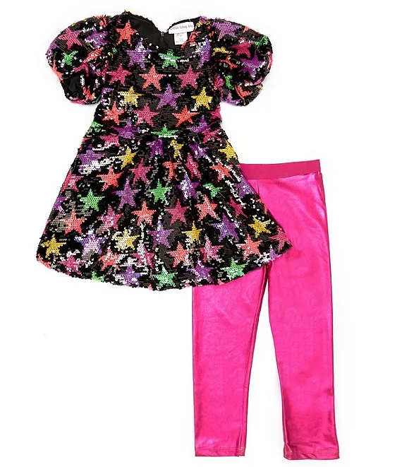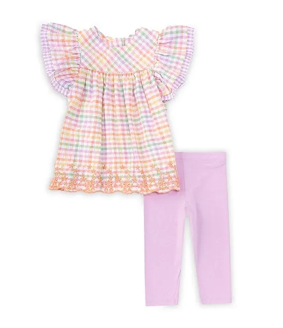 Bonnie Jean Little Girls 2T-6X Multi Flutter Double Ruffle Sleeved Top and Capri Legging Set