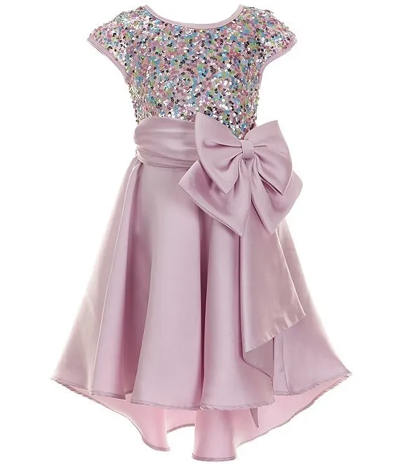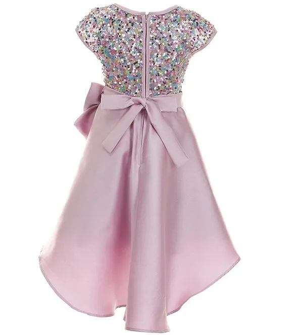 Bonnie Jean Big Girls 7-16 Short Sleeve Sequin To Mikado High Low Dress