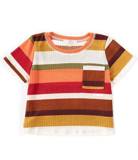 Big Girls 7-16 Short Sleeve Striped Pocket T-Shirt