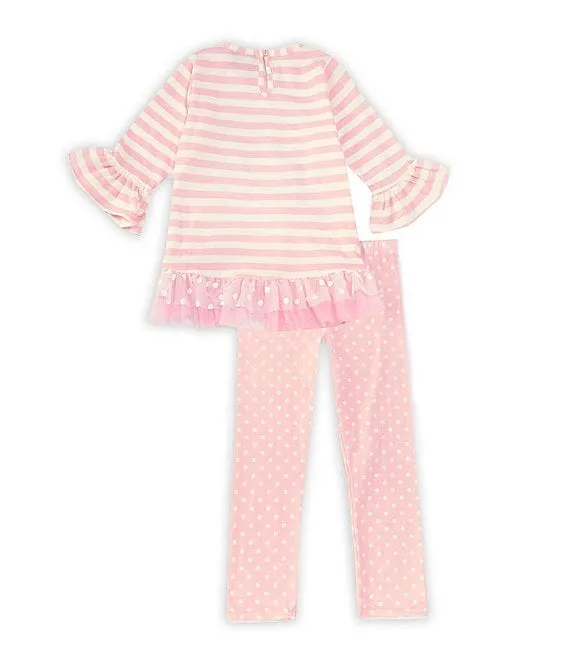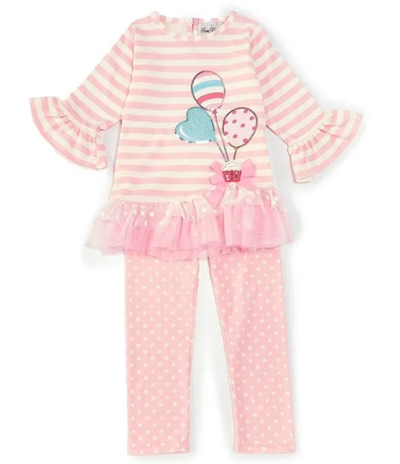 Little Girls 2T-6X 3/4 Sleeve Striped/Mixed Media Balloon Birthday Tunic & Dotted Leggings Set