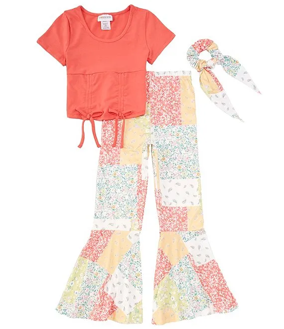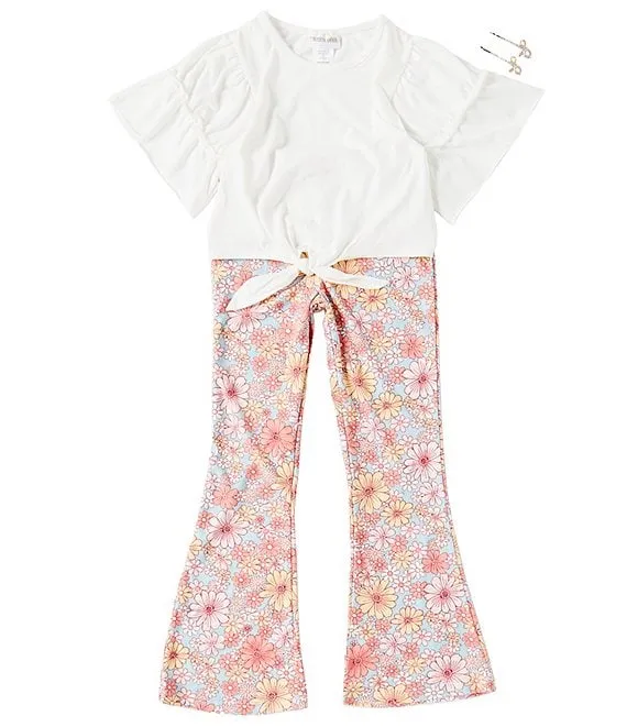 Big Girls 7-16 Short Sleeve Solid Tunic Top & Printed Flare Leg Pant Set